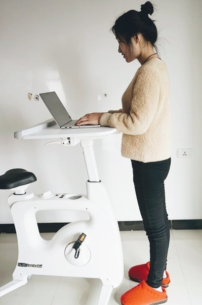 桌子的大小刚好适合笔记本,再加一杯咖啡或者一部手机的空间,所以并不适合作为家里的办公工位,而是临时的处理工作。很多人会担心,边工作和边骑车是否会分心呢?